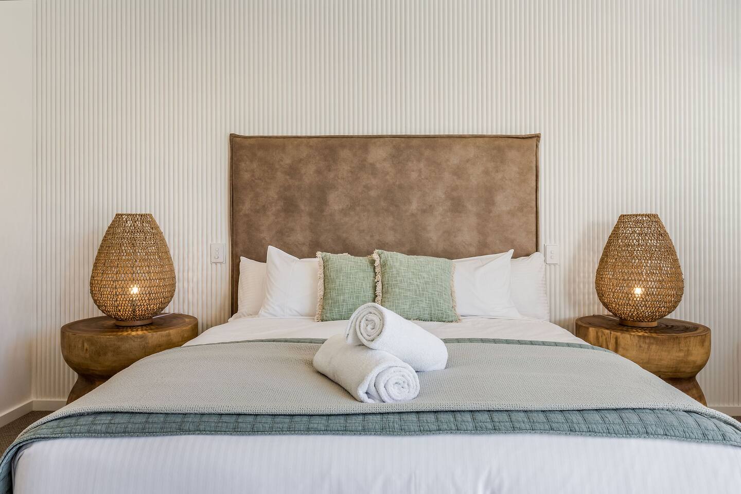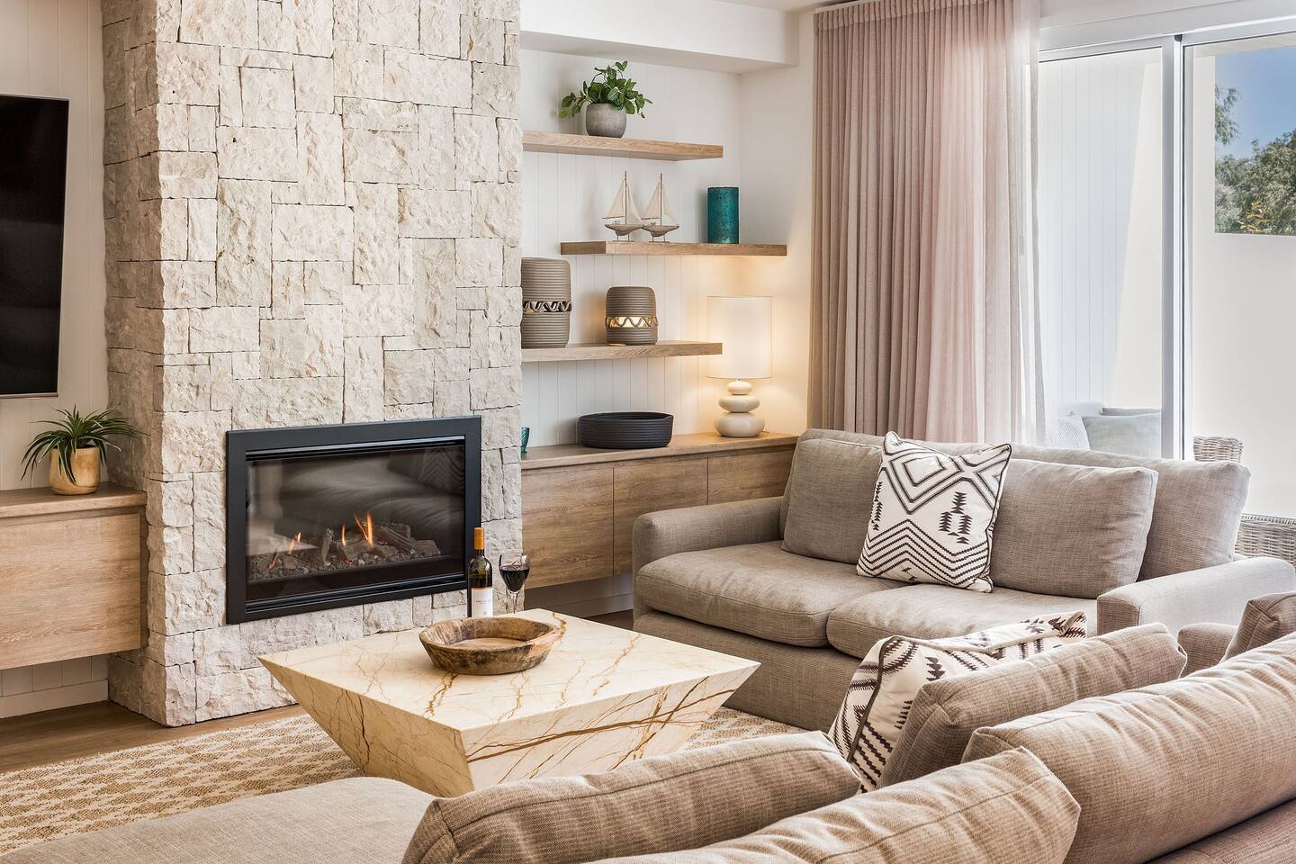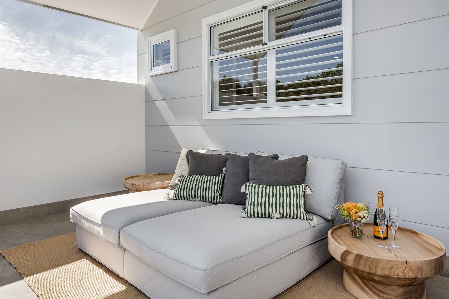 Among peppermint trees, in a lush, parkland setting, luxury meets the ocean at Hidden Ocean Retreat. This brand new, luxury home is only a minutes stroll over lawn to a pristine beach. Ducted air-conditioning & cosy gas fireplace, ensures year-round comfort. Gather in the heated, alfresco area for a BBQ or relax in the private outdoor spa. Lounge in sunshine from the balcony with ocean views. Enjoy access to neighbouring, Club Wyndham’s, heated pool, gym, tennis court, restaurant, bar & more!