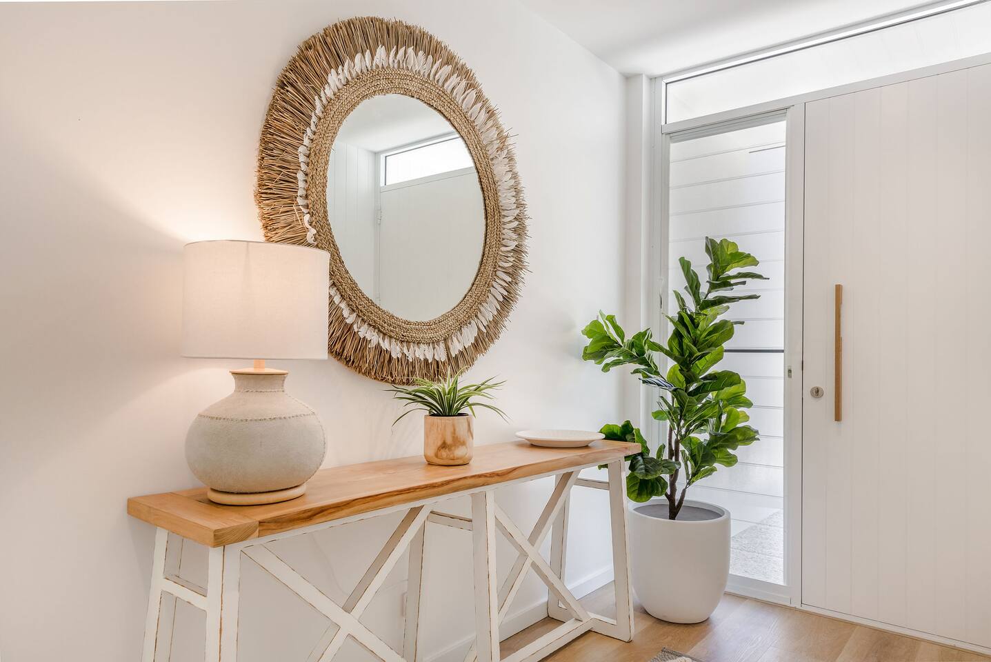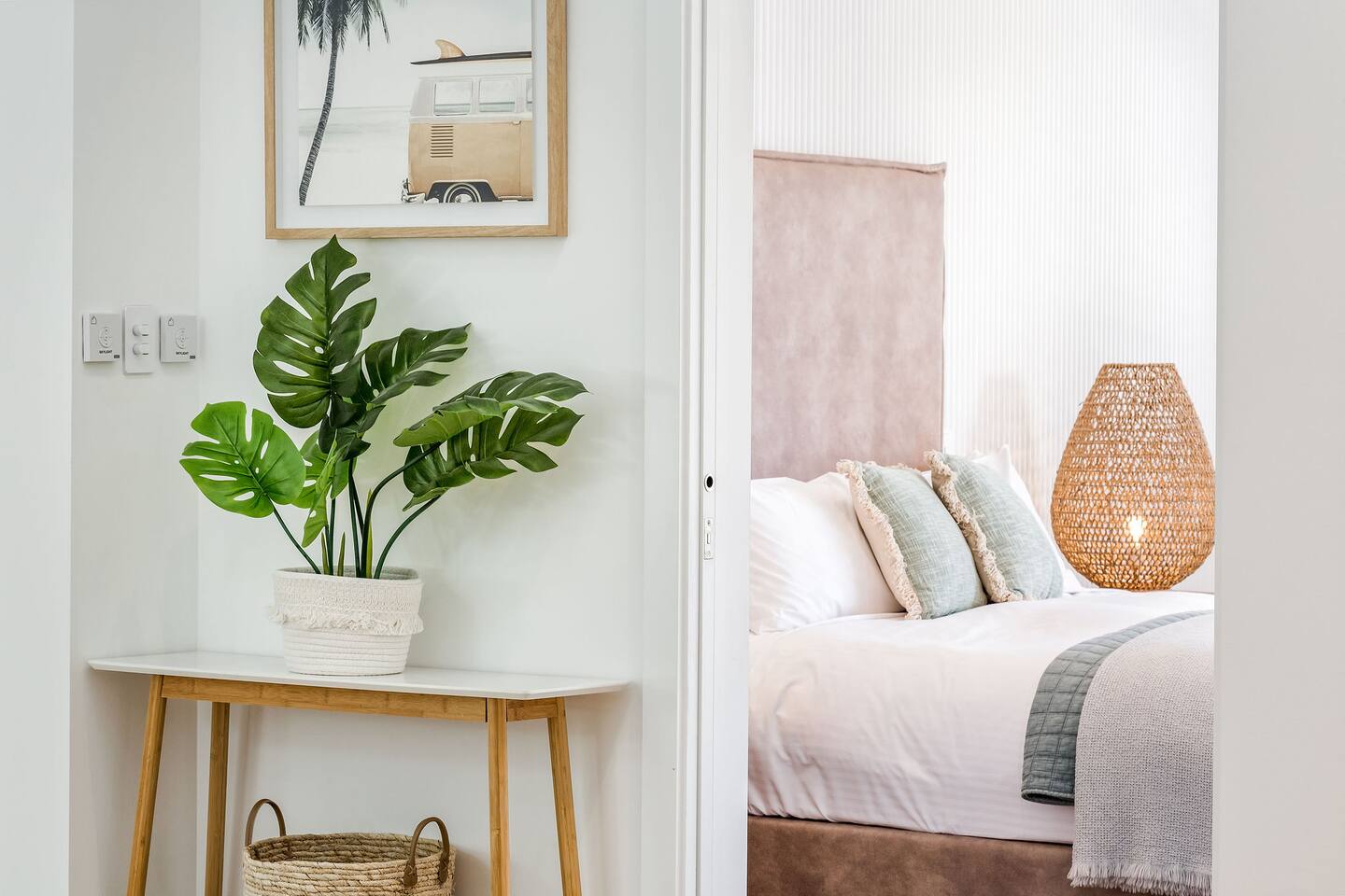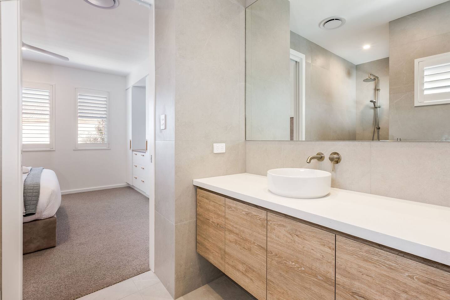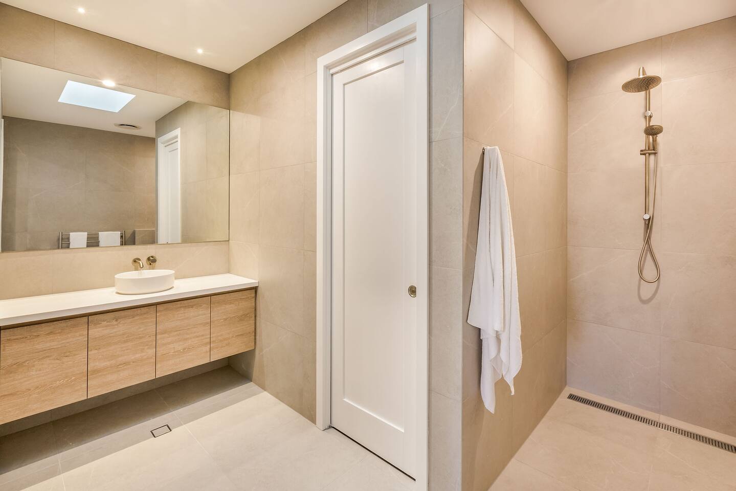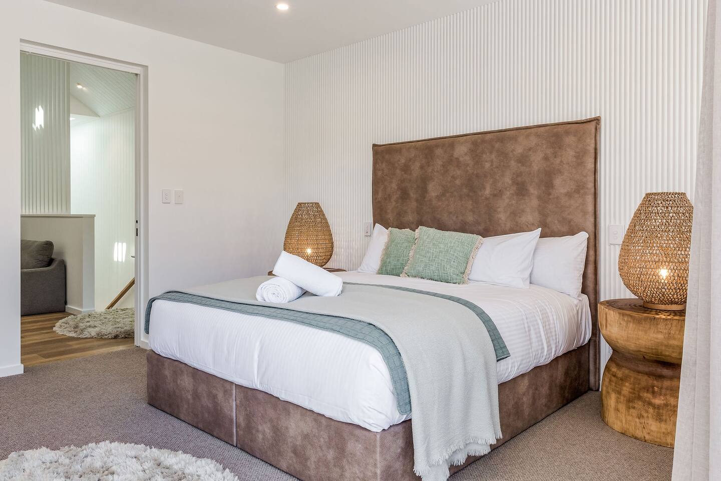 This brand-new 3/4 bedroom, 3.5 bathroom home, offers luxury, comfort and peaceful vibes with quality fittings and Scandinavian styling. A fully ducted heating and cooling system can be individually controlled from every room in the house. The spacious first-floor open plan dining, lounge and galley style kitchen, looks out over the outdoor alfresco area and beyond, to a lush parkland area scattered with shady peppermint trees. The parkland area provides the perfect space for children to play, all within view from the alfresco area. The parkland area and peppy trees is all that separates this amazing property from a beautiful, serene beach! The covered alfresco area boasts its own outdoor kitchen with inbuilt BBQ, as well as a lounge and dining area. A permanent heating system in the alfresco area ensures uninterrupted outdoor gatherings, even on cooler evenings. Back inside to the Scandinavian designed dining table, made from solid Australian Oak. Comfortably seating 9-10 people, with a choice of booth style seating running down one side of the table, or stylish dining chairs on the other. Cosy up in front of the gas fireplace on ultra-plush couches for a movie on the huge, 75 inch plasma TV. The spacious kitchen is an entertainers dream. Fitted with next-level quality appliances, including two dishwashers, double fridge/freezer with water filter, induction hot plate, oven, Nespresso coffee pod machine and more! Everything you’ll need to make meal preparation a breeze. Walk through the kitchen, into the separate laundry room to meet all of your clothes washing and drying needs. Heading upstairs to the rumpus room where you can enjoy natural lighting, or star gazing, from two stunning skylights set in the high raked ceiling. A second 75 inch screen TV is wall mounted with the ability to be swivelled each direction for viewing from the cushy lounges, or the custom built queen bunks. This uniquely designed room gives the option for a fourth bedroom if required. Three spacious bedrooms, all with private TV’s, huge wardrobes and stunning en-suite bathrooms, surround the rumpus room. Each bathroom has a heated towel rail and spacious showers with the ability to switch from regular to luxurious “rain” shower heads. A free-standing bath awaits you in the master king bedroom en-suite. Adjoining the main bedroom, the balcony with ocean views is the perfect spot for catching the sunshine with a good book, or a gin! The double enclosed car garage ensures both convenience and peace of mind. Extra parking bays are only a few strides away from the house.