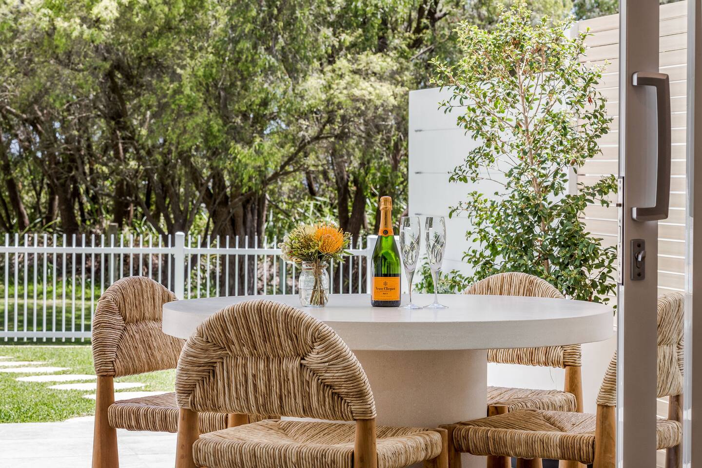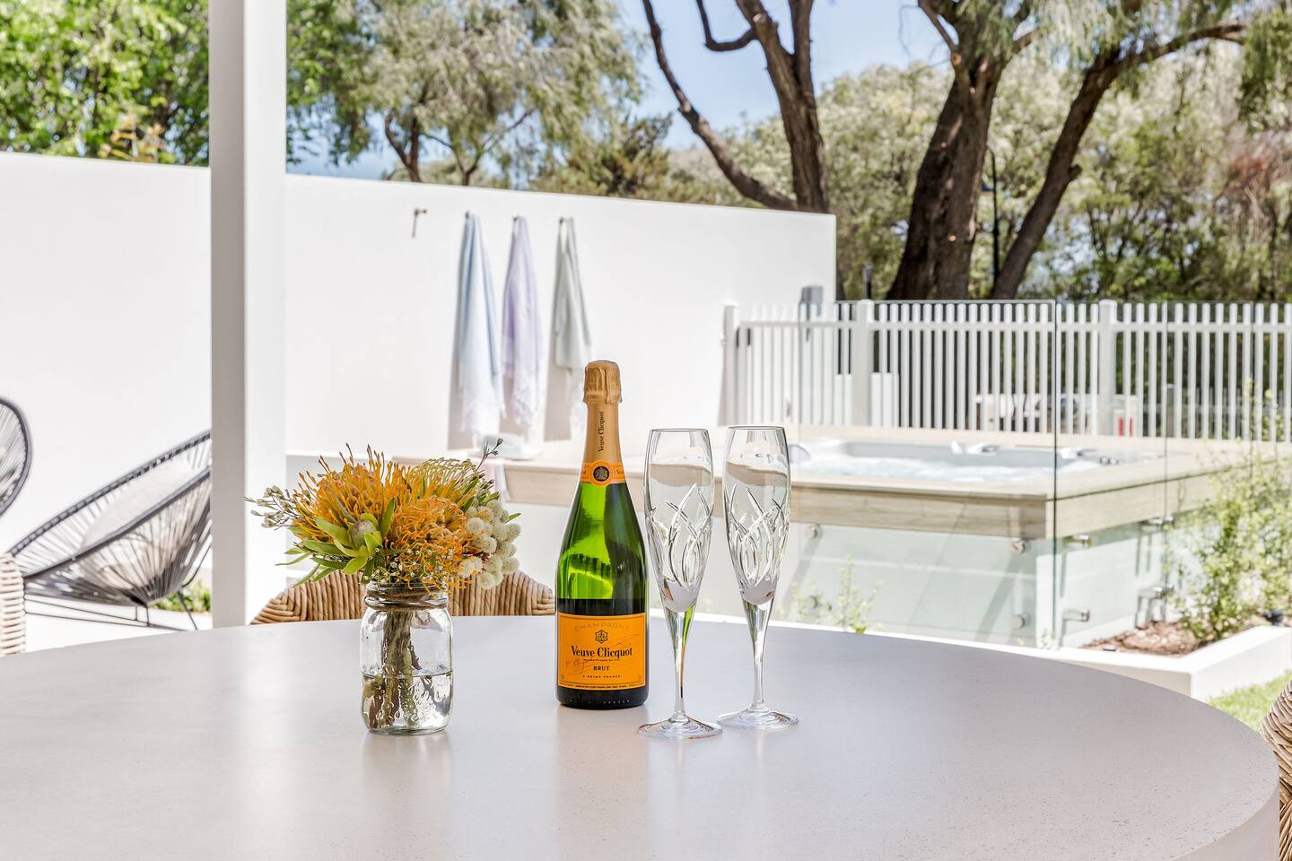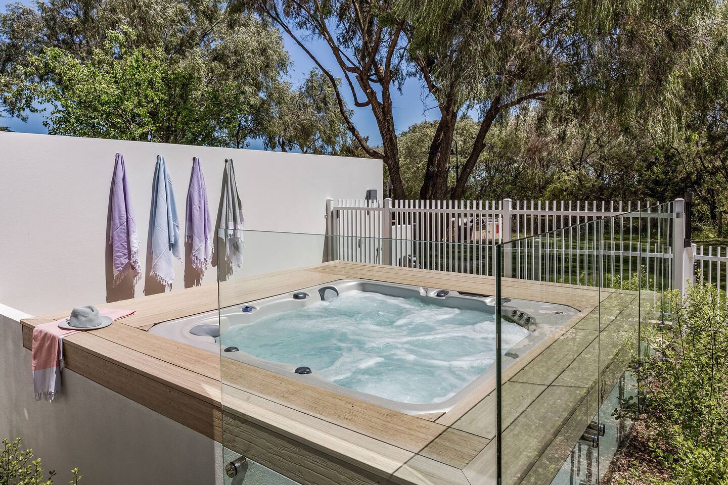 Hidden Ocean, perfectly situated between Dunsborough and Busselton, is the perfect base to reach hundreds of wonderful attractions the region has to offer. The villa itself is only 20 metres over lawn and through shady peppermint trees to a pristine beach. There is no road separating you from the sandy shores and calm waters of Geographe Bay! Flame Tree winery and cellar door is only a short walk from the Hidden Ocean Retreat for wine tastings. There are many restaurants, beaches, wineries and markets less than a 10 minute drive from the property.
