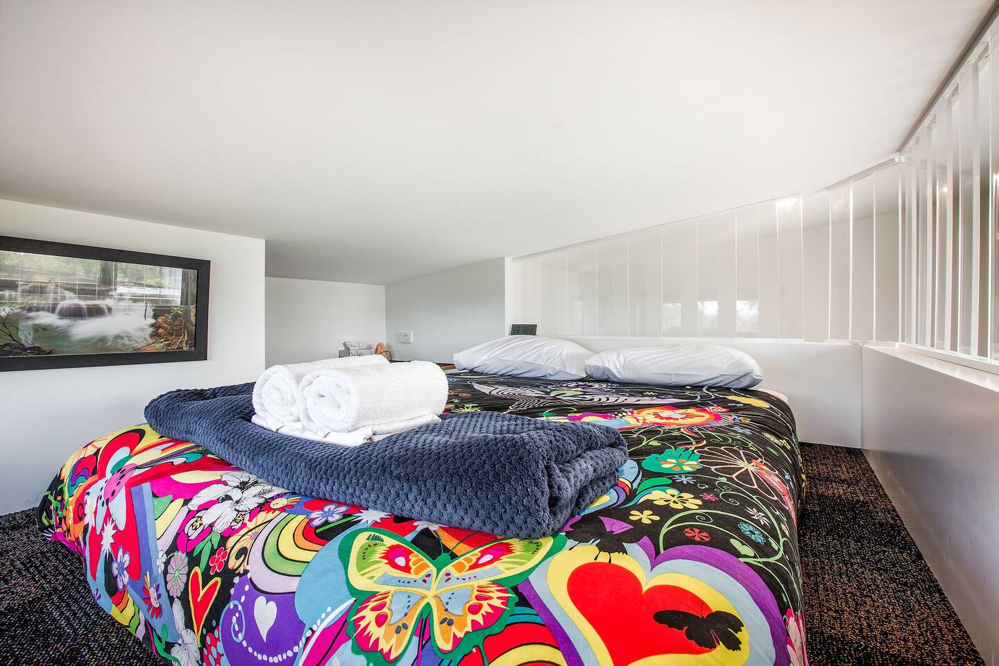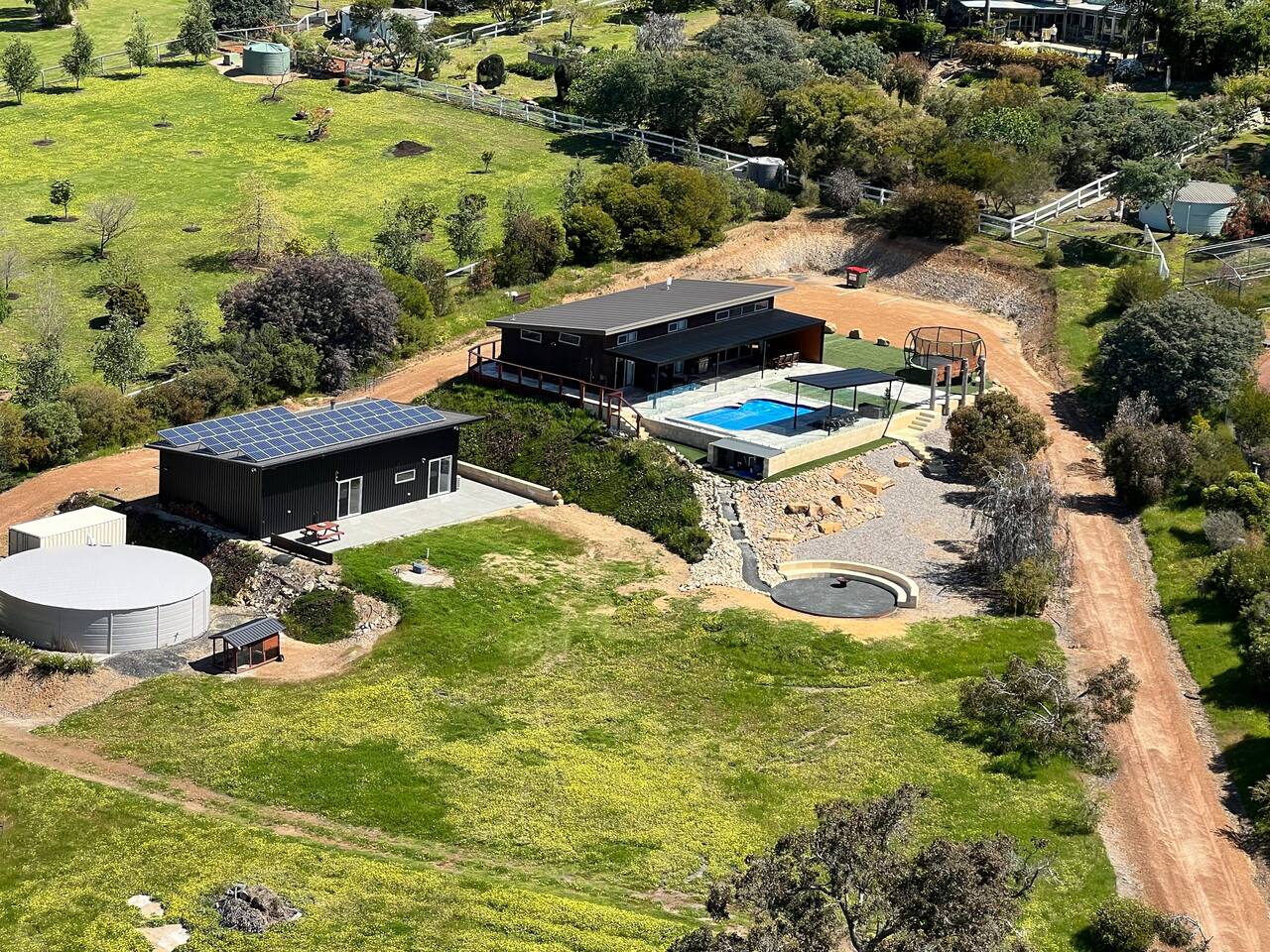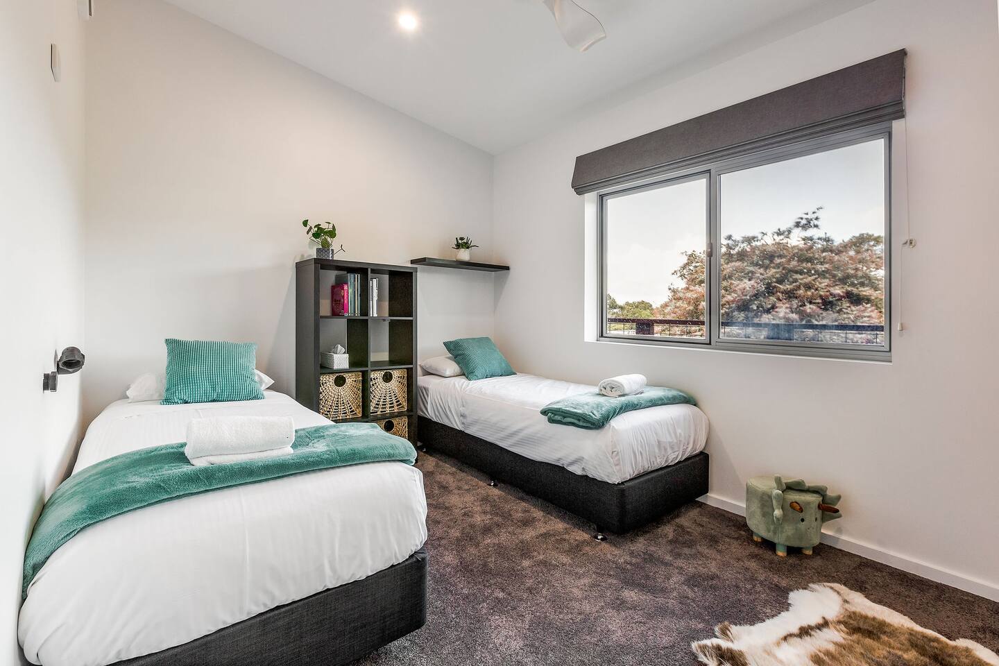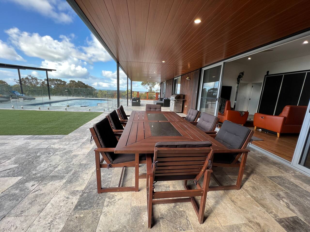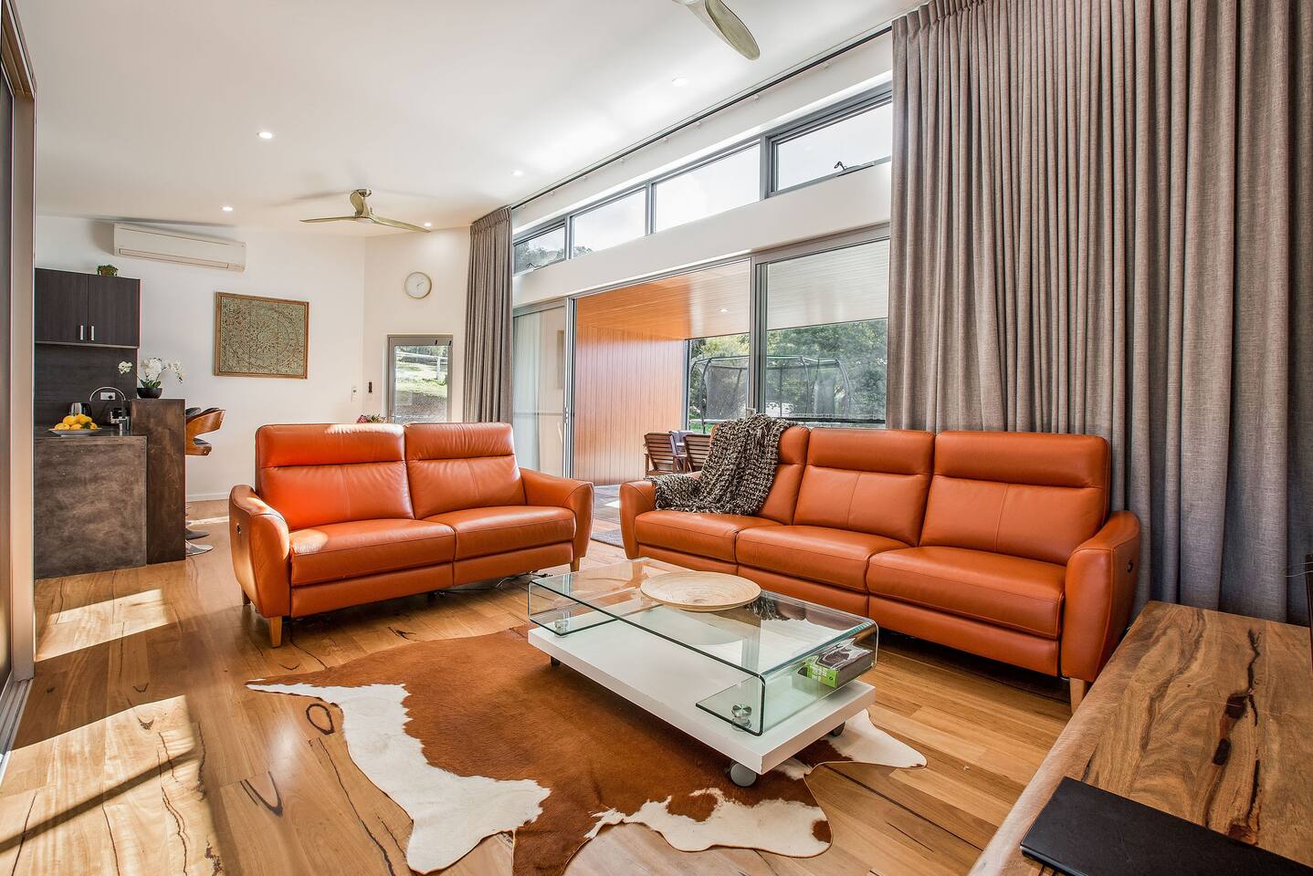 If you are looking for space, tranquility and family entertainment in a peaceful neighbourhood, look no further than this idyllic, rural property. All beds are made with quality linen and bath towels provided. The bathroom is huge with a double shower, double vanity and plenty of storage space for all. The king bedroom overlooks the pool and alfresco area. This bedroom has a private TV. Enjoy valley views from the upper level sleeping lofts of the two spilt level bedrooms. The 4th bedroom is a twin single with two single beds on ground level. The modern kitchen is fully equipped with a huge multifunction stove and coffee machine. You will find a full size washing machine, dryer and sink in the laundry closet. The open plan dining and lounge look out to the outdoor pool alfresco area. A short walk down from the main house brings you to the “Games Cave” with pool table, vintage gaming console and another TV/ sitting area beside the wood fire stove. Guests are welcome to borrow beach toys, beach chairs and other activities, equipment and toys found in the “Games Cave.” Back up by the house, a BBQ sits under the alfresco, ready for an evening BBQ. A second alfresco, on the other side of the pool, is yet another fantastic spot to sit and watch the world go by from your sun lounger. A short stroll down the path brings you to an open amphitheatre space with a fire pit to enjoy in the cooler months. To keep the kids entertained you’ll find a funky monkey climbing frame and wooden picnic tables set amongst the trees. Books, puzzles, toys, games and activities can found throughout the house and “Games Cave”. With peace, comes respect :) Please note you are booking a house in a peaceful neighbourhood, with neighbours close by. Excessive noise or parties will not be tolerated. While family friendly bbq’s are expected & encouraged, if you are looking for a party house, or plan for excessive rowdy behaviour, this is not the house for you.