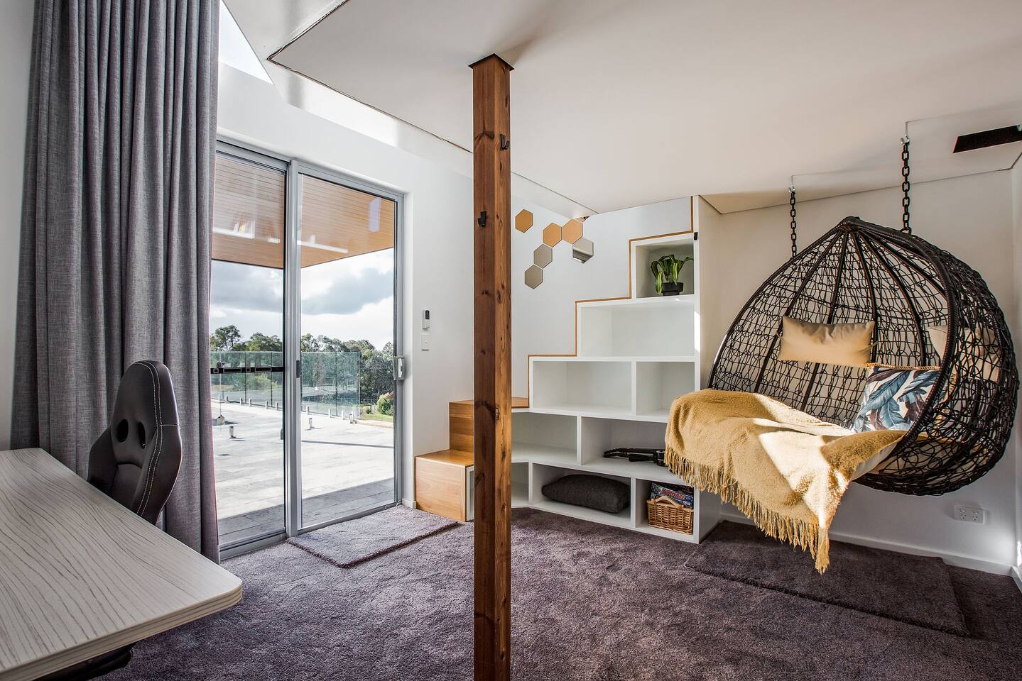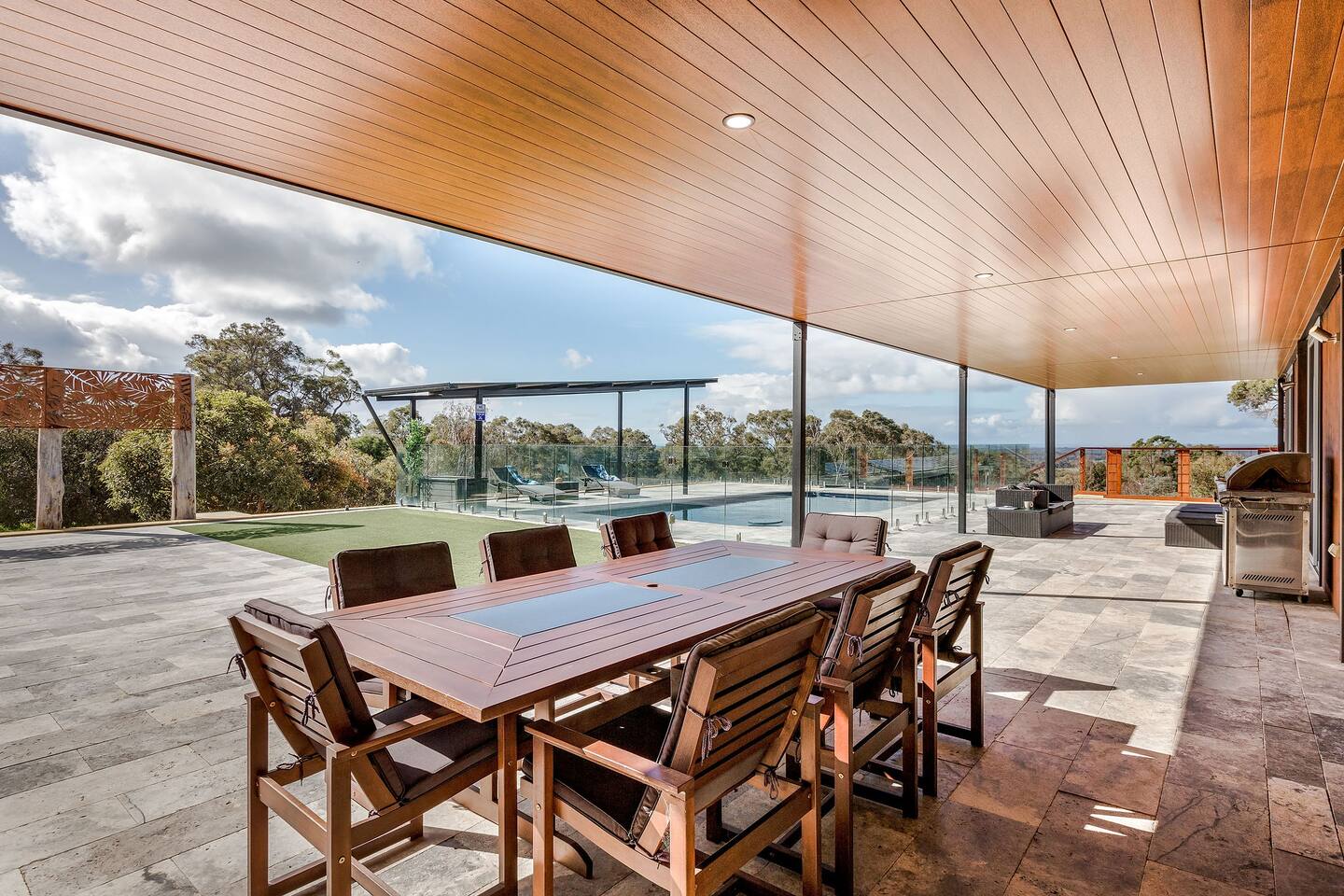 Take in views extending over treetops to Geographe Bay from the pool. This property oozes character & charm in a tranquil neighbourhood. Relax on a pool lounge and watch the world go by or head to the “Games Cave” for a game of pool or vintage arcade game. Sit in the amphitheatre by the fire pit for roasted marshmallows. Endless amusement for kids with a tree swing, trampoline, funky monkey climbing frame and an abundance of space and fresh, country air. Woodbridge Vista is a true south escape!